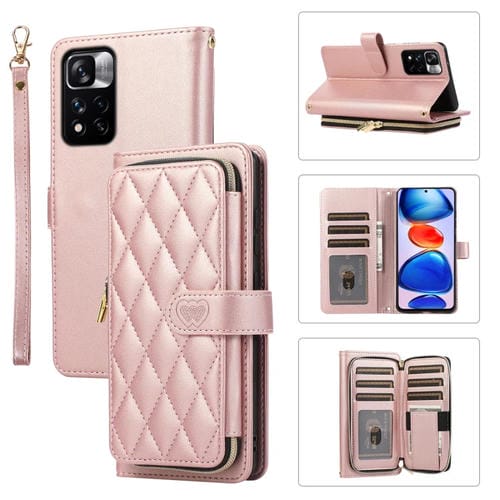 Funda de Cuero Tipo Billetera con Cremallera Completa y Diseño Rombal para Xiaomi 12T/12T Pro (Oro Rosa)