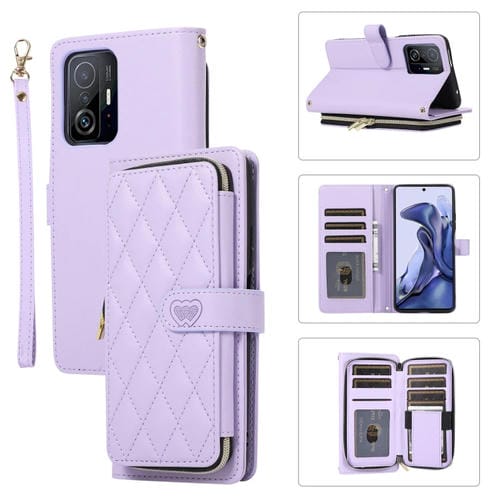 Funda de Cuero Tipo Billetera con Cremallera Completa y Diseño Rombal para Xiaomi Mi 11T/11T Pro (Morado)
