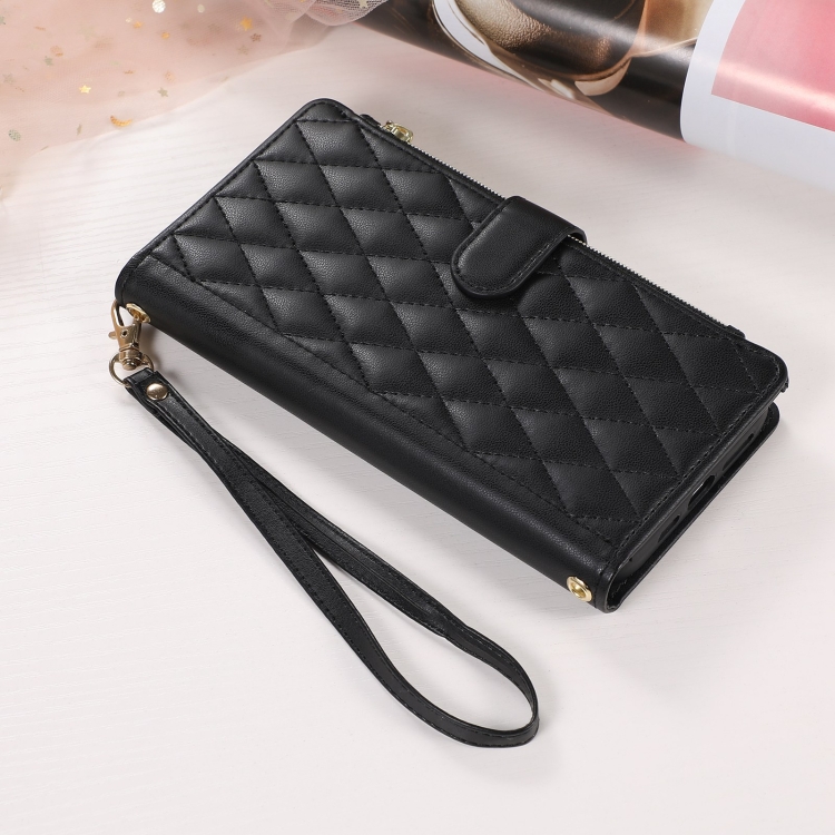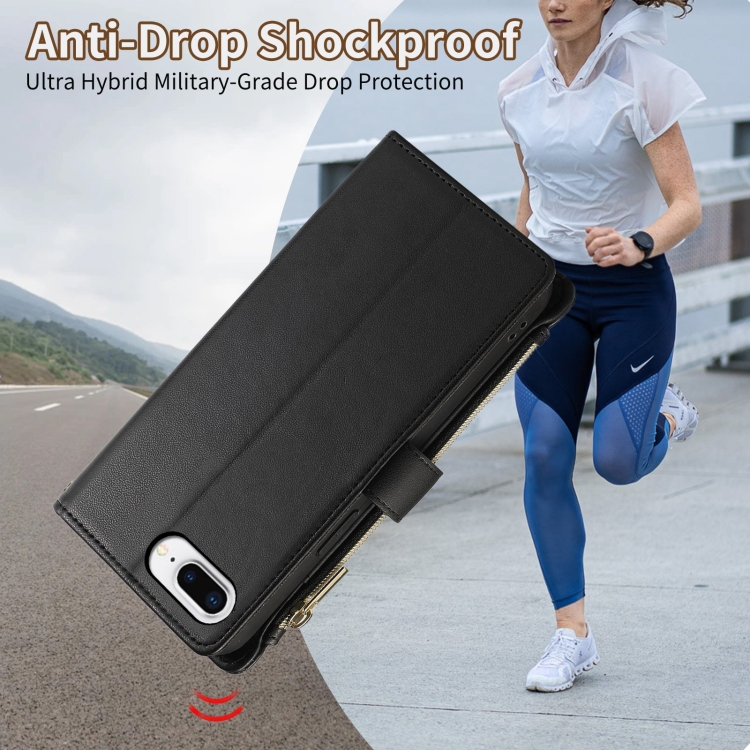 Funda Tipo Billetera Cuero con Cremallera Rombo para iPhone 7 Plus/8 Plus (Negra)