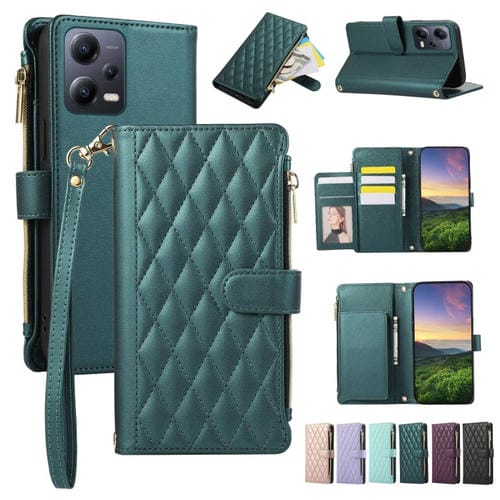 Funda de Cuero Tipo Billetera con Cremallera Rombal Global para Redmi Note 12 5G (Verde)