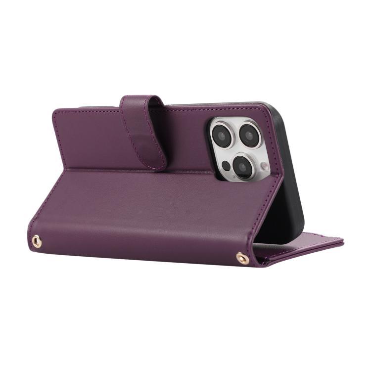 Funda de Cuero Tipo Billetera con Cremallera Rombal para iPhone 16 Pro (Morado Oscuro)