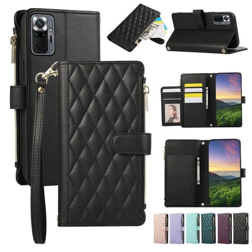 Funda de Cuero Tipo Billetera con Cremallera Rombal para Redmi Note 10 Pro/10 Pro Max (Negra)