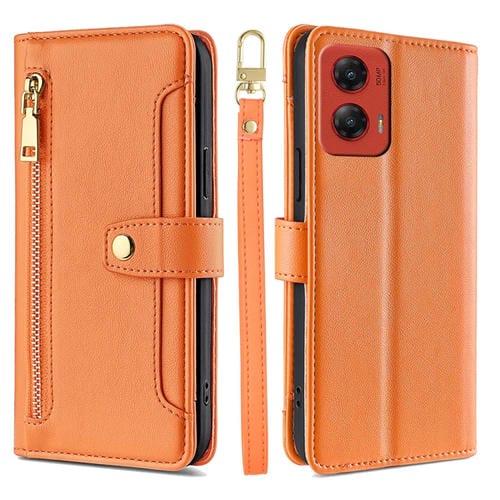 Funda Cuero Tipo Billetera con Cremallera y Textura de Oveja para Motorola Moto G Stylus 5G (2024) (Naranja)