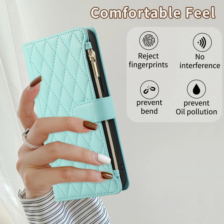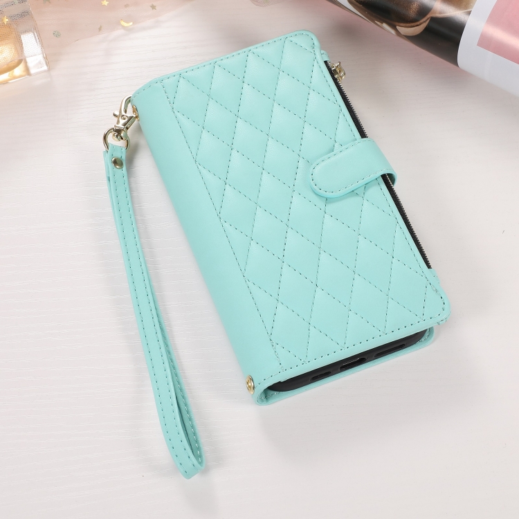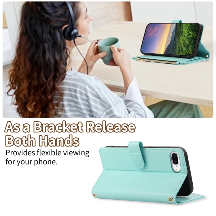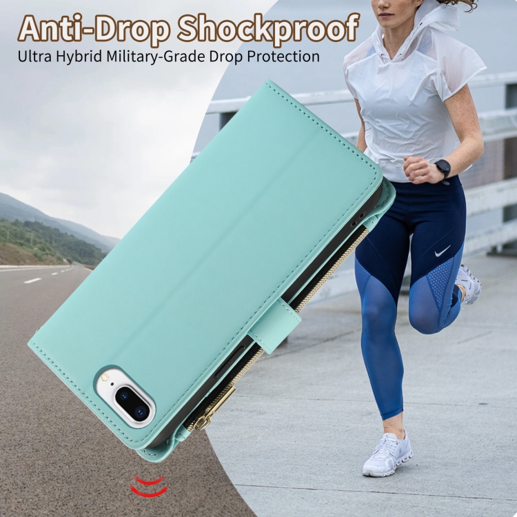 Funda Tipo Billetera Cuero con Cremallera y Diseño Rombal para iPhone 7 Plus/8 Plus (Cian)