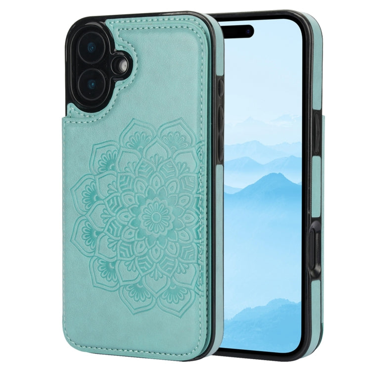 Funda Tipo Billetera Cuero Mandala Doble Hebilla para iPhone 16 (Verde)