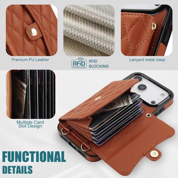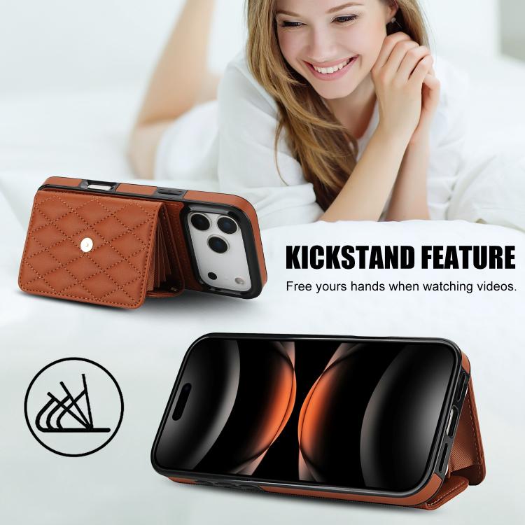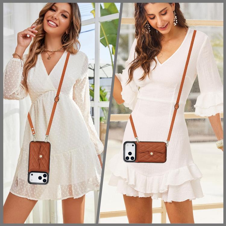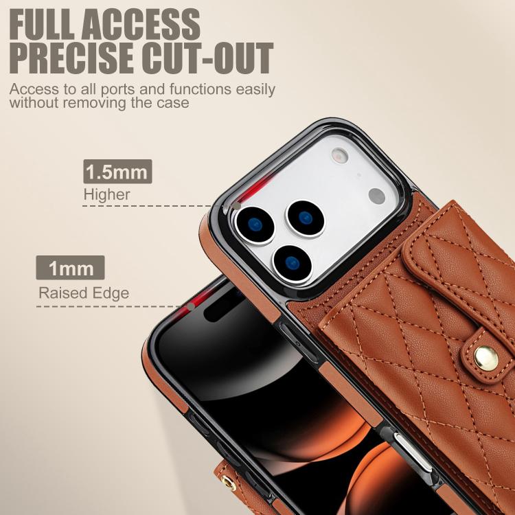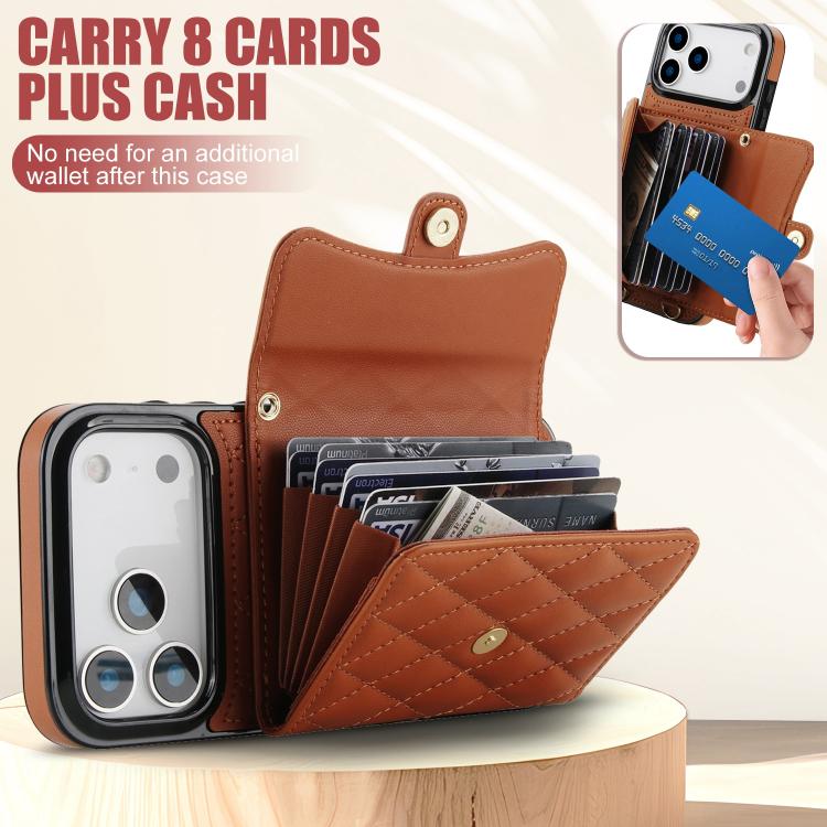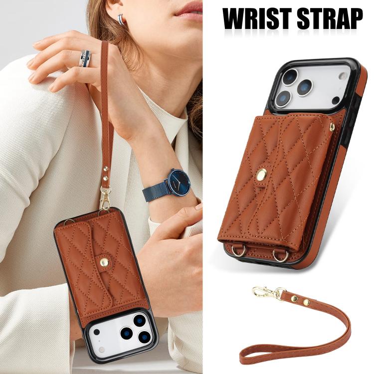 Funda de cuero tipo cartera horizontal con diseño rómbico cruzado para iPhone 17 Pro (marrón)