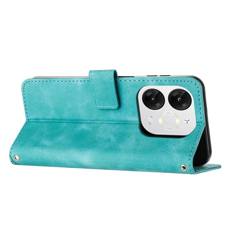Funda de Cuero Triangular Dream Triangle con Cordón Largo para Itel A80 (Verde)