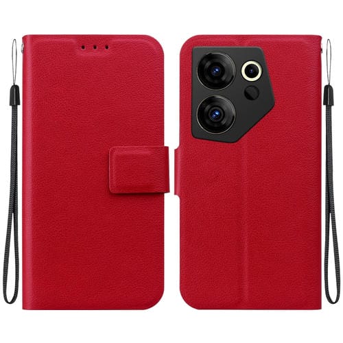 Funda de Cuero Ultradelgada con Hebilla Magnética para Tecno Camon 20 Premier (Rojo)
