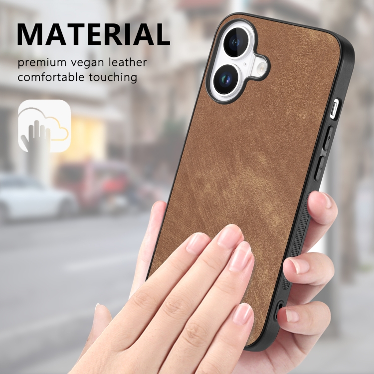 Funda para iPhone 16 de Cuero Vintage con Parte Trasera de Policarbonato (Marrón)