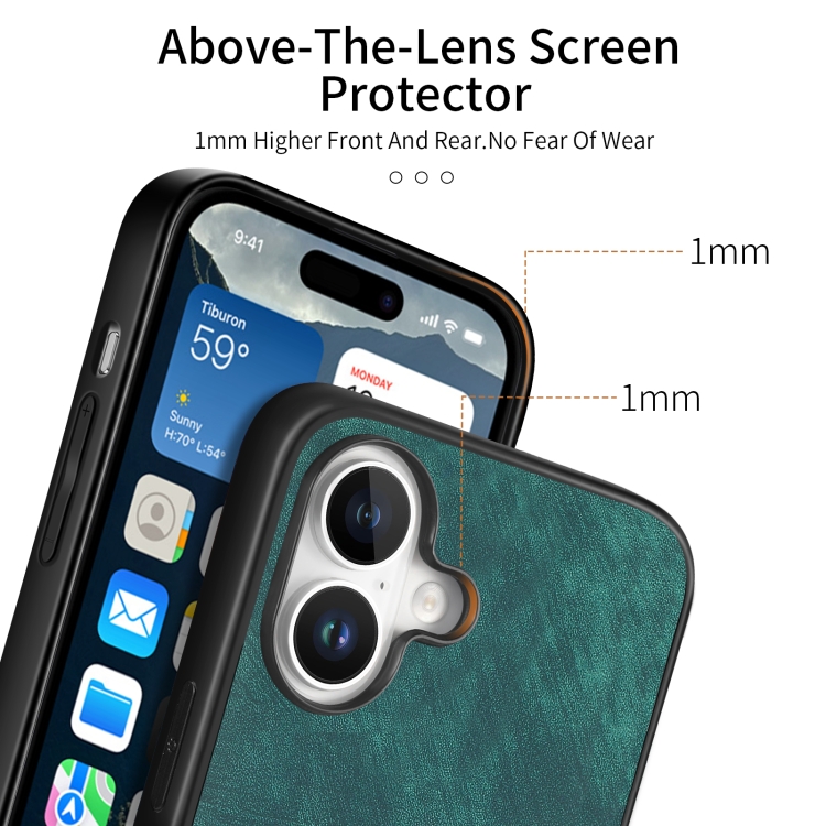Funda para iPhone 16 de Cuero Vintage con Parte Trasera de Policarbonato (Verde)