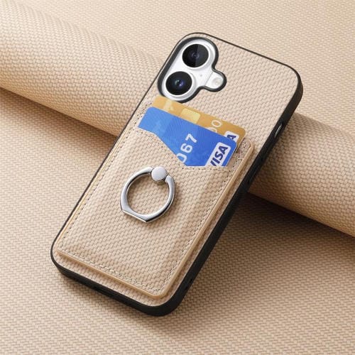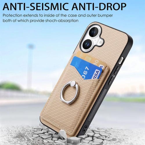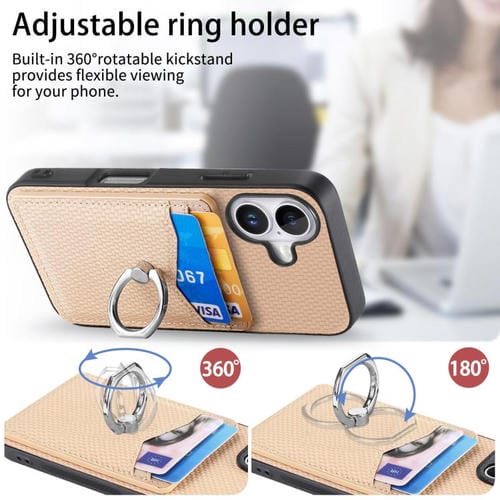 Funda de fibra de carbono con anillo para tarjeta para iPhone 17 (caqui)