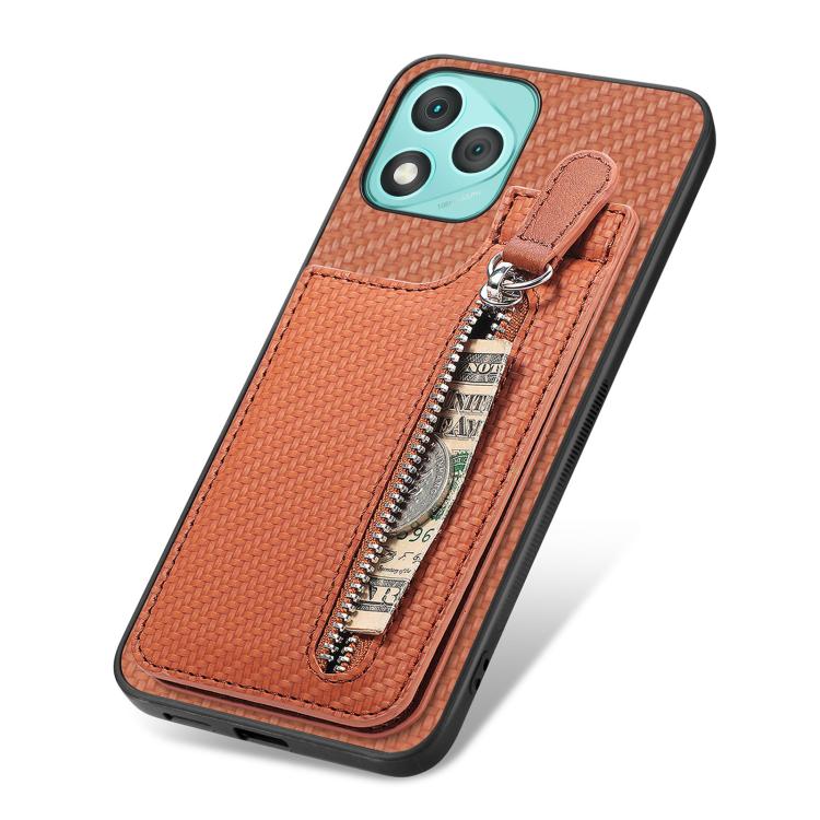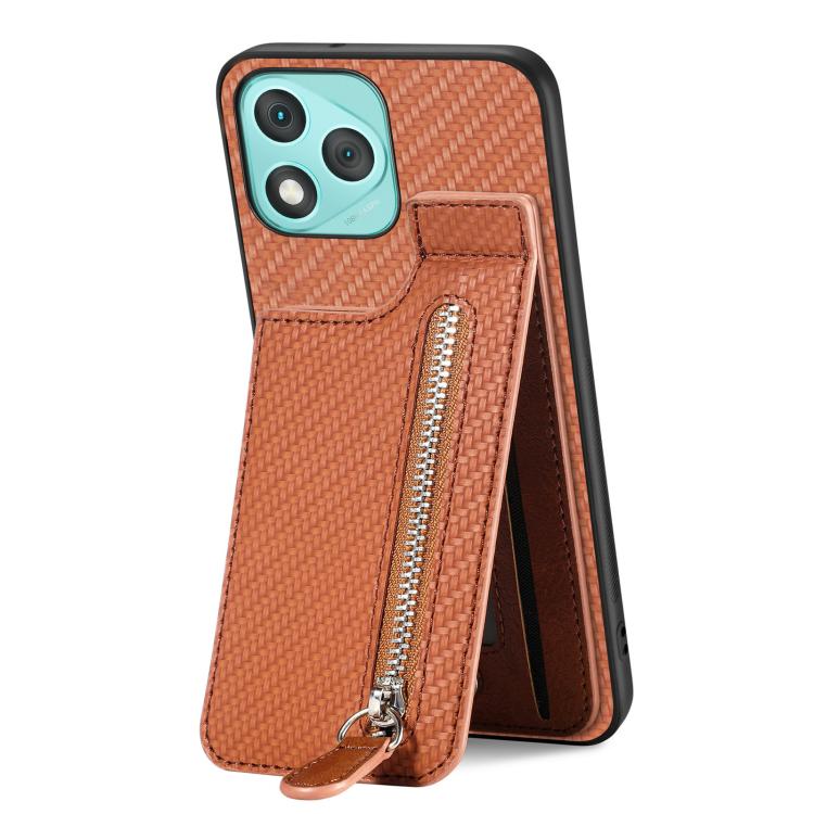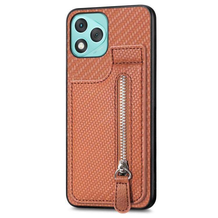 Funda de fibra de carbono con cierre vertical y tapa para Honor 400 Lite (marrón)