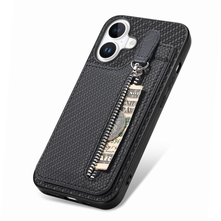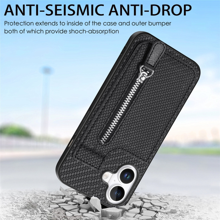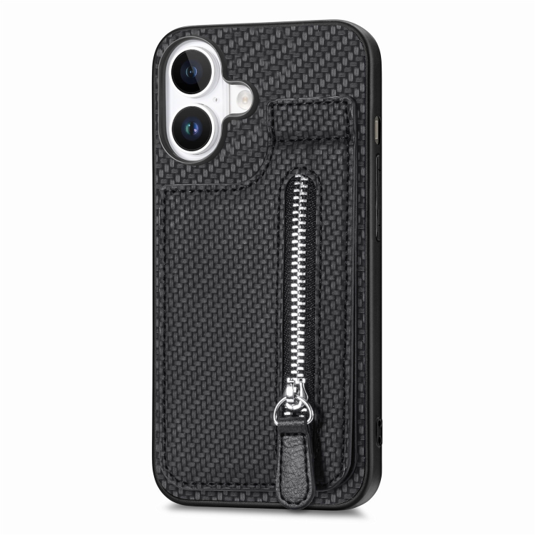 Funda de Fibra de Carbono para iPhone 16 con Cremallera Vertical (Negra)