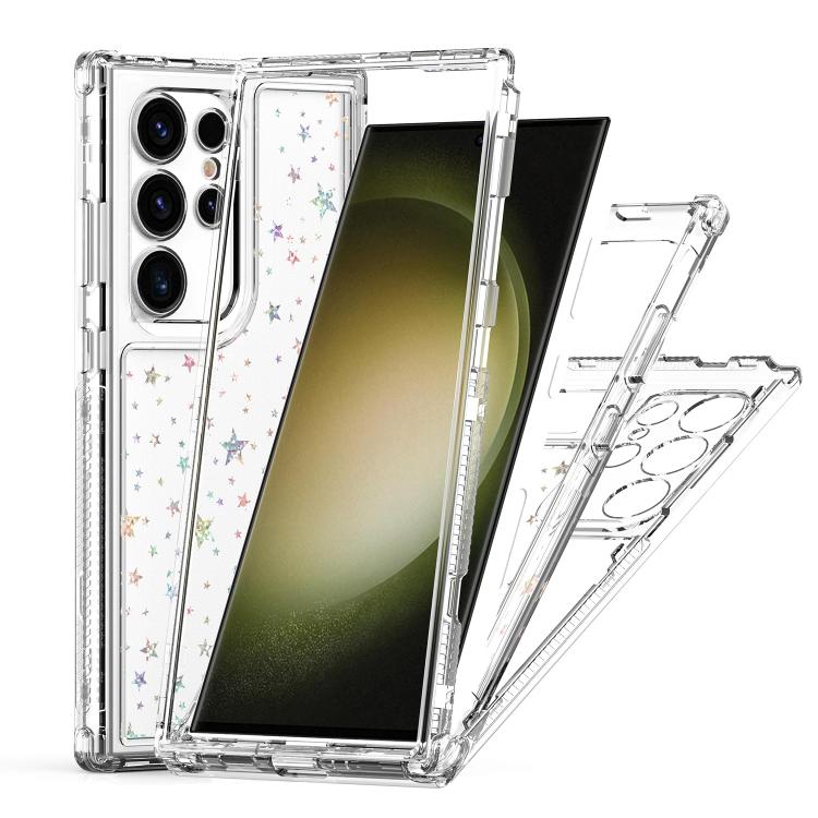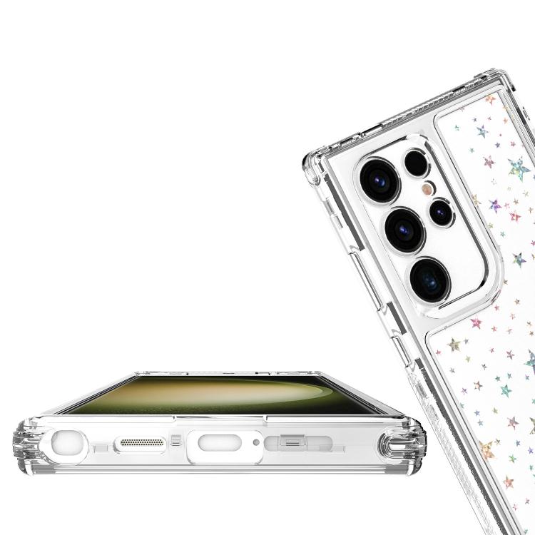 Funda de papel acrílico transparente con efecto láser para Samsung Galaxy S24 Ultra 5G (Estrellas)