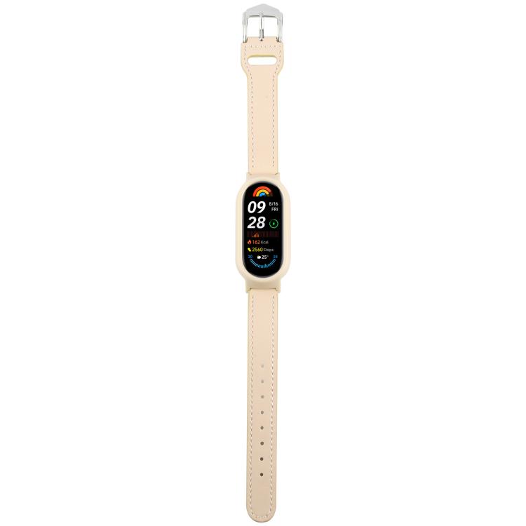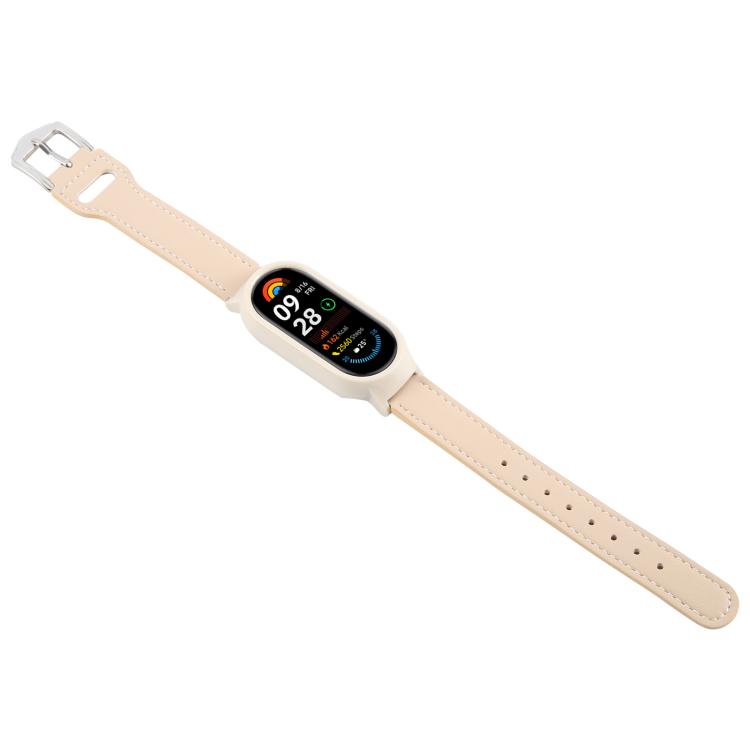 Funda de PC para Xiaomi Smart Band 9 con correa de cuero de microfibra integrada (beige + blanco retro)