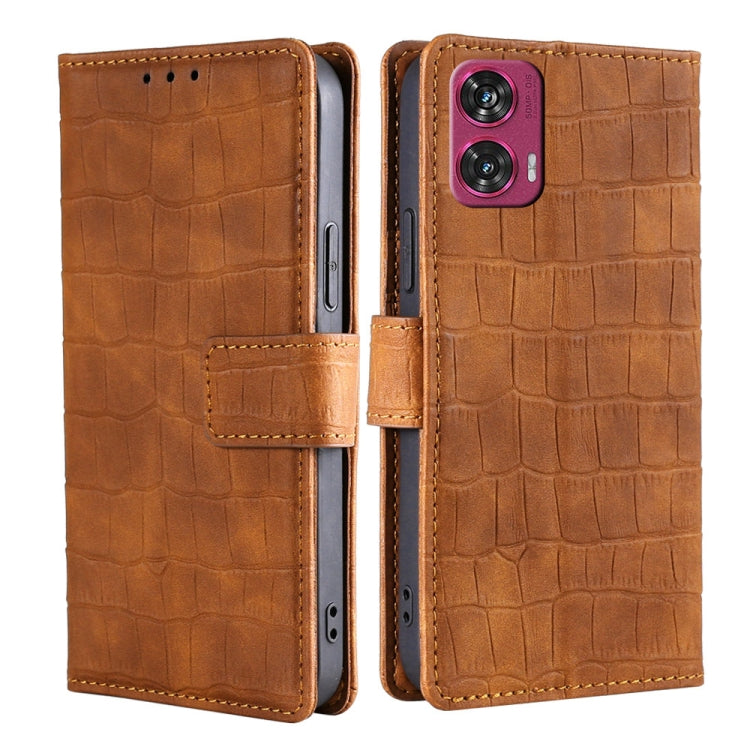 Funda de Piel con Cierre Magnético y Diseño de Cocodrilo para Motorola Edge 50 Fusion 5G (Marrón)