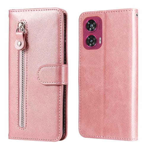 Funda de Piel con Cremallera y Textura de Becerro para Motorola Edge 50 Fusion (Oro Rosa)
