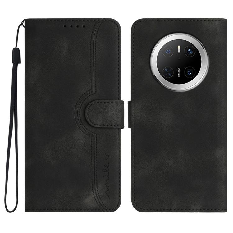 Funda de Piel para Huawei Mate 70 con Diseño de Corazón (Negra)