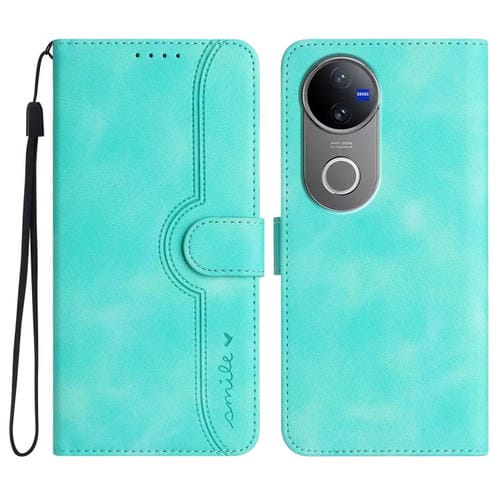 Funda de Piel con Diseño de Corazón para Vivo V50 (Azul Claro)