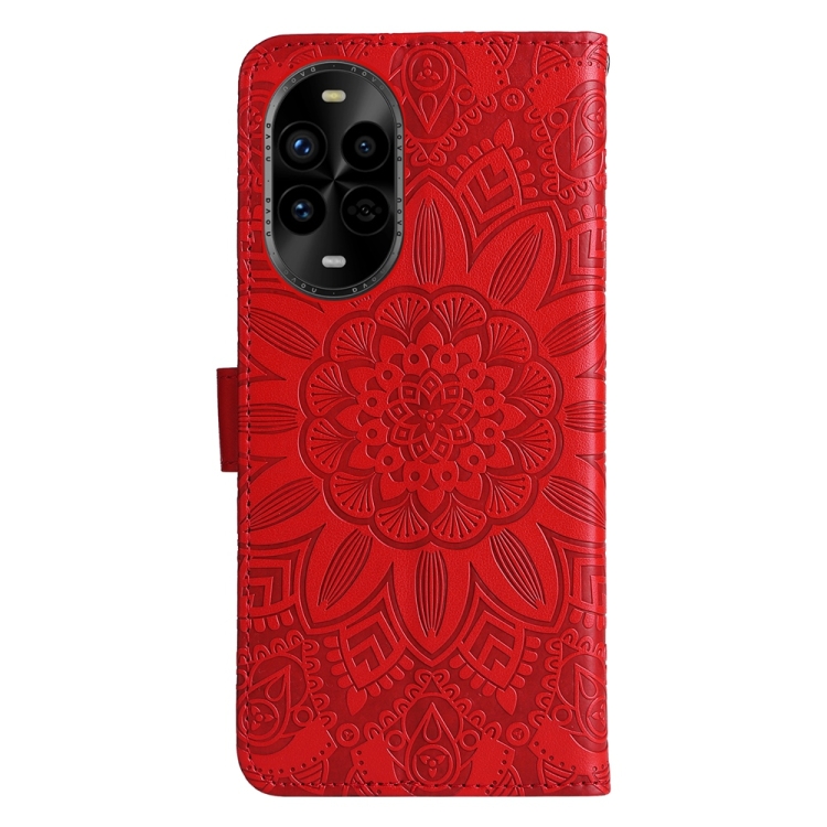 Funda de Piel con Diseño de Girasol en Relieve para Huawei Nova 13 Pro (Roja)