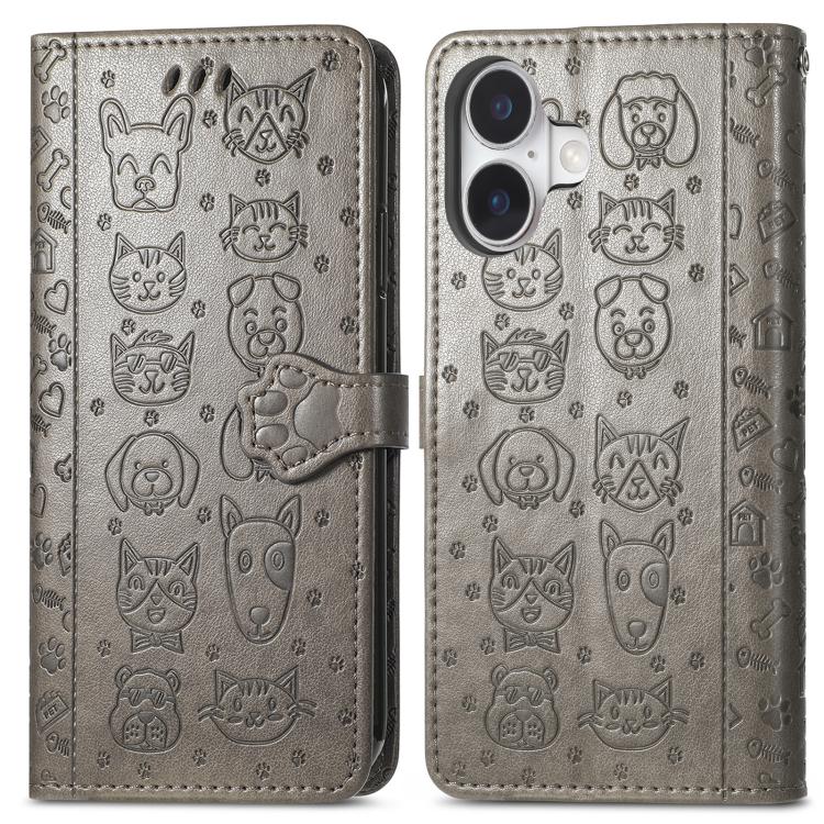 Funda de piel con estampado de gato y perro para iPhone 17 (gris)