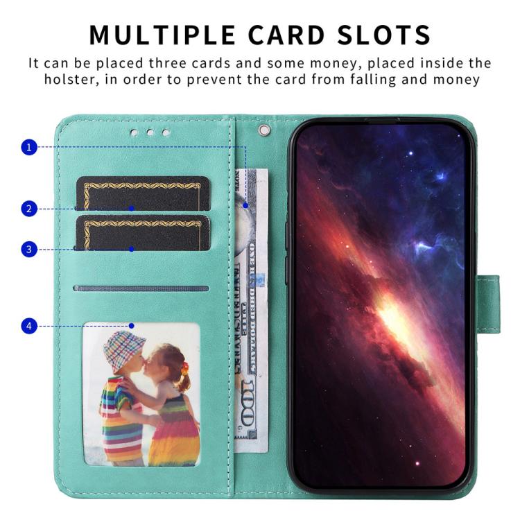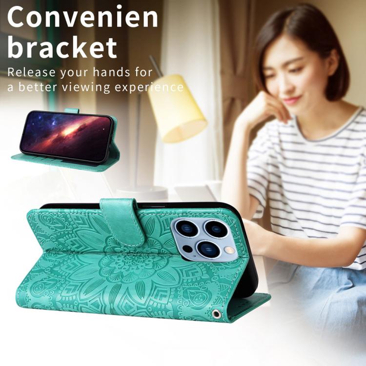 Funda de Piel con Estampado de Girasoles En Relieve para Vivo V50 Lite 4G/5G (Verde)