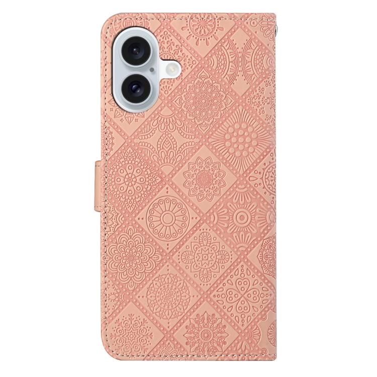 Funda de piel con estampado étnico en relieve para iPhone 17 (rosa)
