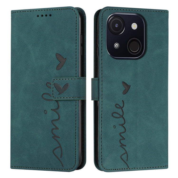 Funda de Piel con Relieve de Corazón y Cordón Largo para Teléfono Itel A50C (Verde)