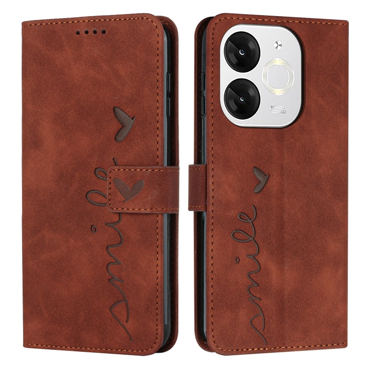 Funda de Piel con Relieve de Corazón y Cordón Largo para Teléfono Itel A80 (Marrón)
