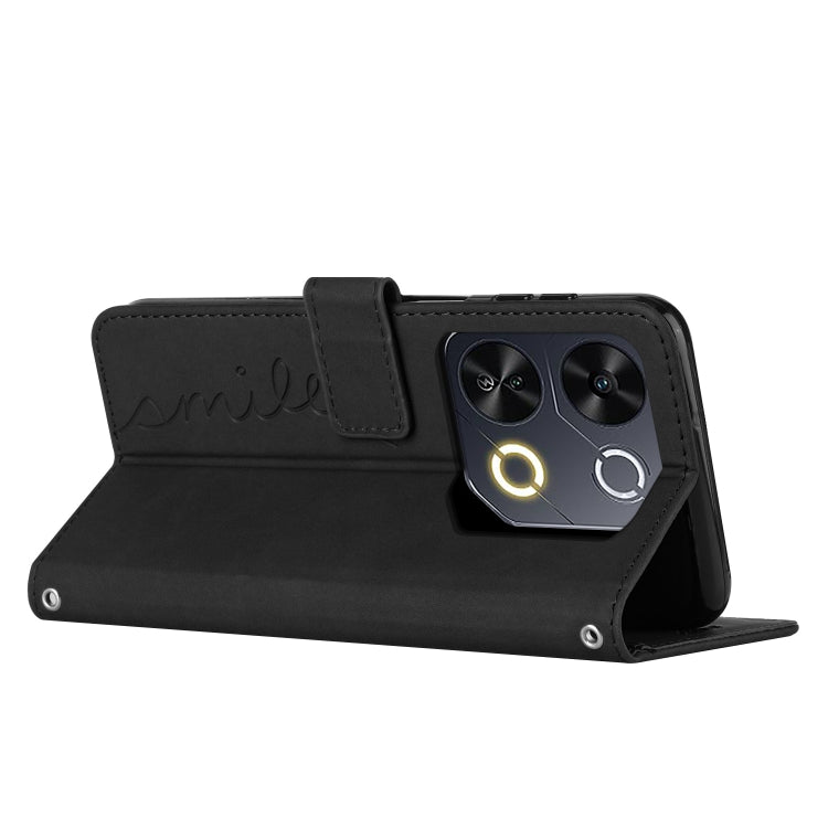 Funda de Piel con Relieve de Corazón y Cordón Largo para Teléfono Itel P65 (Negro)