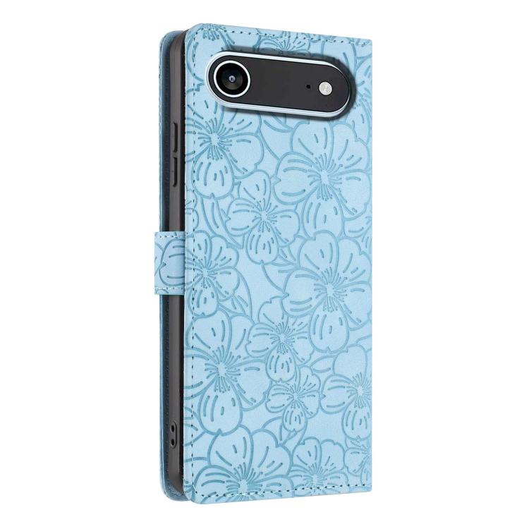 Funda de piel con relieve de flores de cerezo para iPhone Air (azul claro)