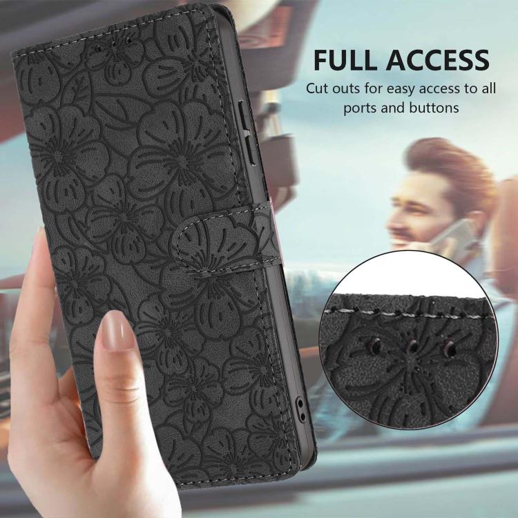 Funda de piel con relieve de flores de cerezo para iPhone Air (negra)