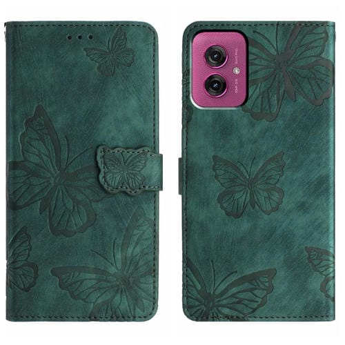 Funda de Piel con Relieve de Mariposa para Motorola Moto G55 (Verde)