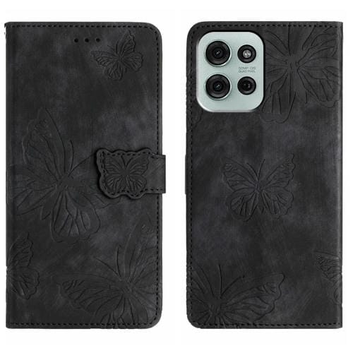 Funda de Piel con Relieve de Mariposa para Motorola Moto G75 (Negra)