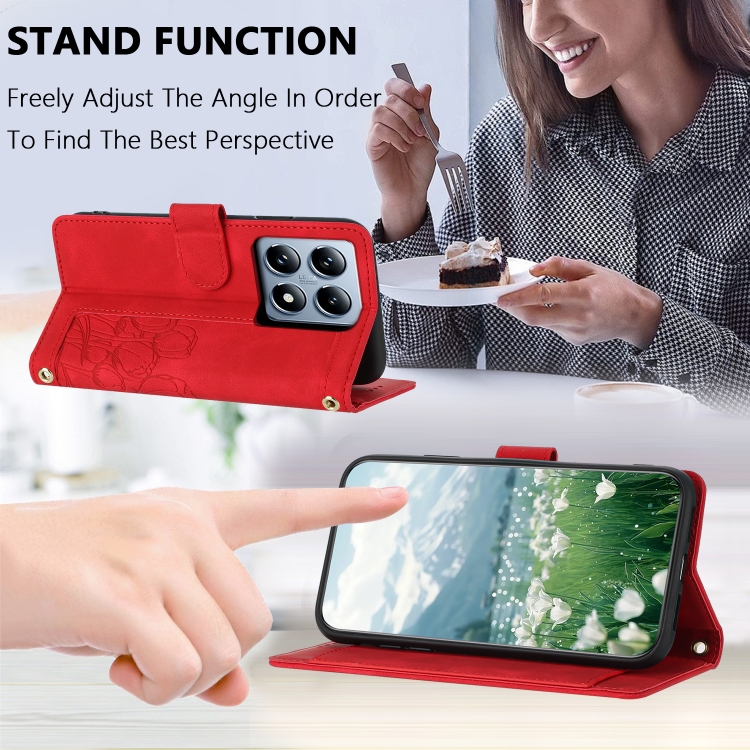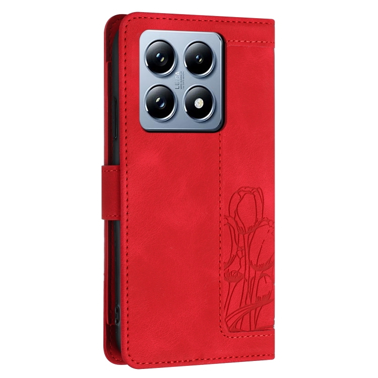 Funda De Piel Con Relieve De Tulipanes Para Xiaomi 14T Con Cordón (Rojo)
