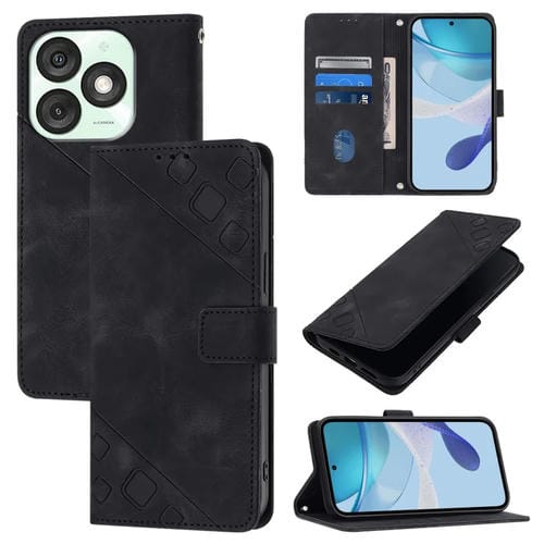 Funda de Piel con Relieve para Teléfono Itel A50 (Negra)