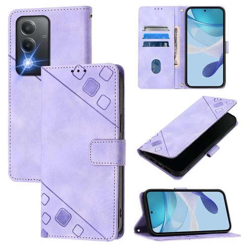 Funda de Piel con Relieve para Teléfono Oppo A3 Pro 5G de la India (Morado Claro)