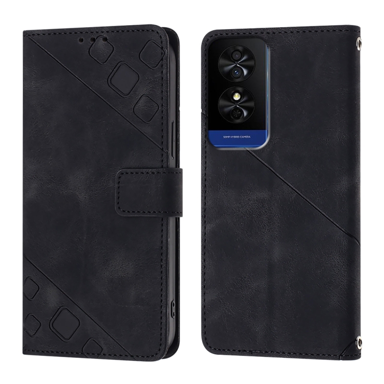 Funda de Piel con Relieve para Teléfono TCL 50 5G (Negra)
