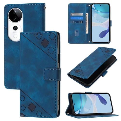 Funda de Piel con Relieve para Teléfono Vivo S19 Pro (Azul)