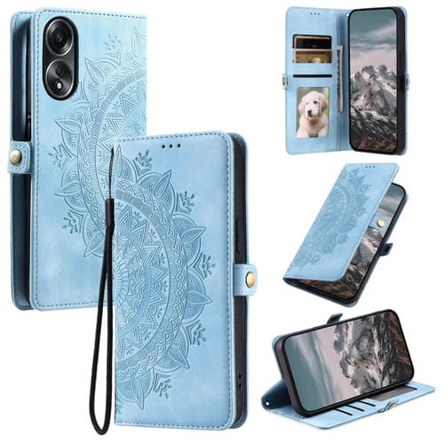 Funda de Piel con Relieve Totem para Oppo A58 4G (Azul)