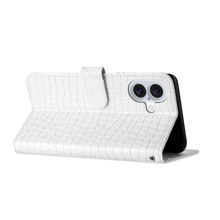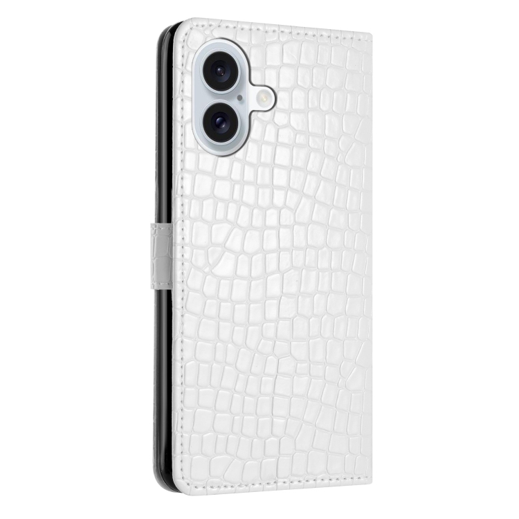 Funda de Piel con Tapa Horizontal Textura de Cocodrilo para iPhone 16 (Blanca)