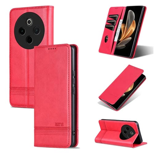 Funda Magnética Azns de Piel con Textura de Becerro para Vivo Y300 Pro (Roja)