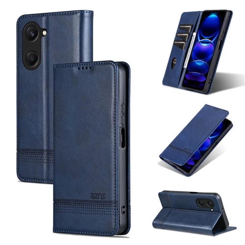 Funda de Piel con Textura de Becerro Magnética Azns para Vivo Y37/Y37M 5G/Y36T 5G (Azul Oscuro)