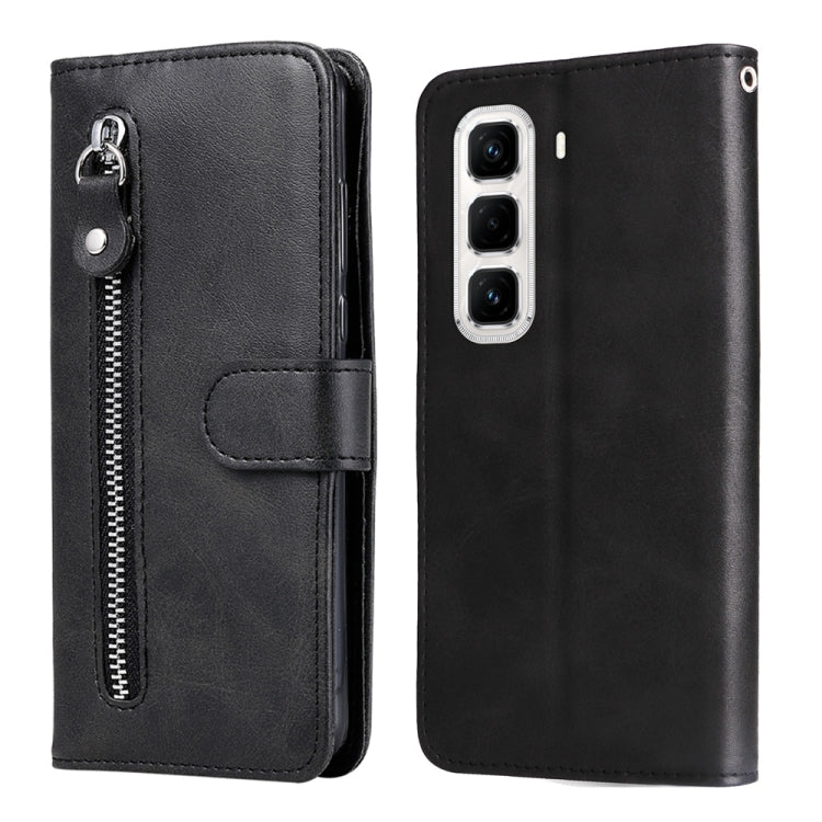 Funda de Piel Textura de Becerro con Cremallera para Infinix Hot 50 Pro+ 4G (Negra)