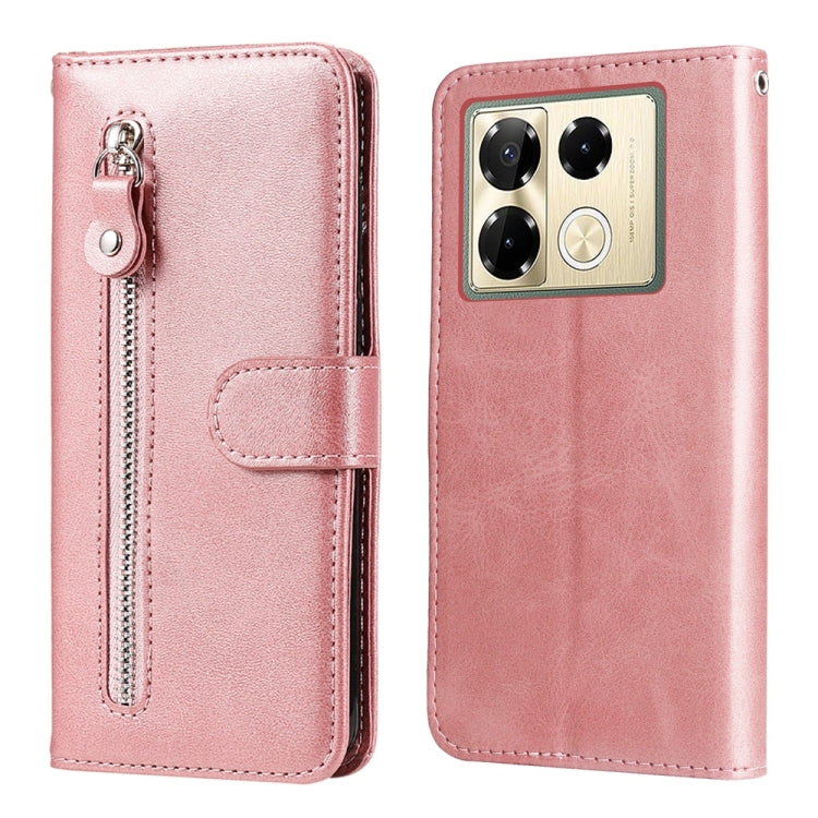 Funda de Piel con Textura de Becerro y Cremallera para Infinix Note 40 Pro 4G/5G/Pro+ (Oro Rosa)