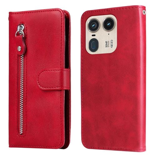 Funda de Piel Textura Becerro con Cremallera para Motorola Edge 50 Ultra/X50 Ultra (Roja)