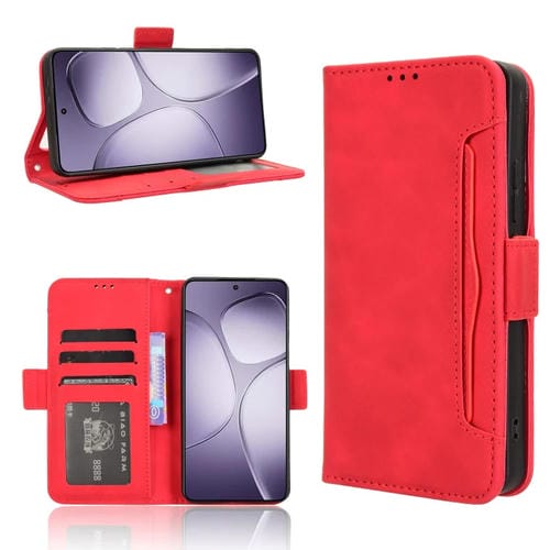 Funda de Piel Sintética con Textura de Becerro y Ranuras para Tarjetas para Redmi K70 Ultra (Roja)