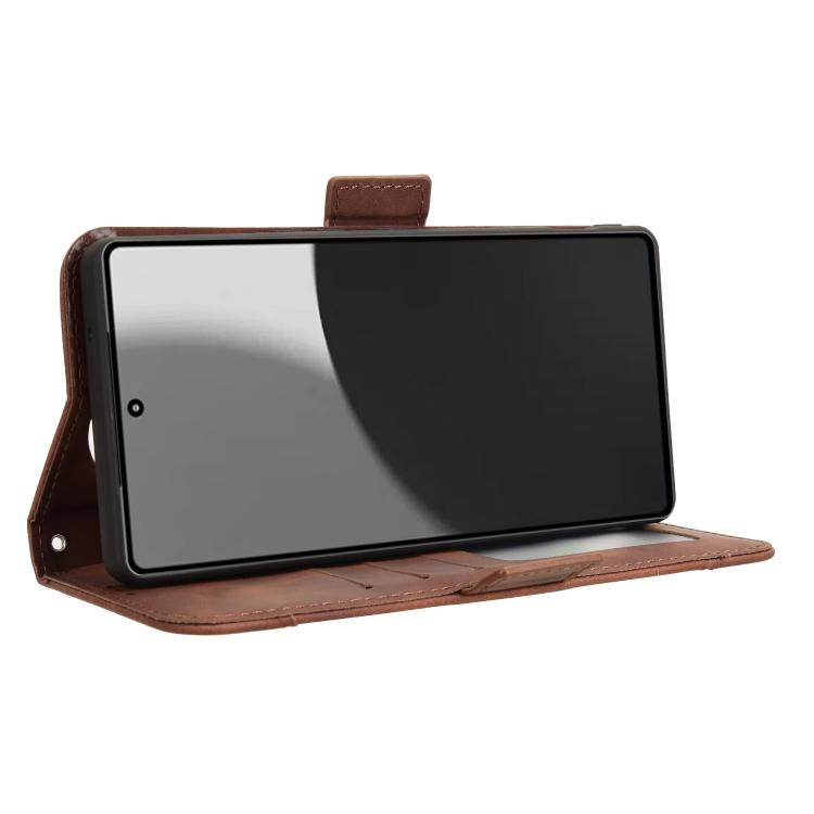 Funda de Piel Becerro para Sharp Aquos R9 Pro con Ranuras para Tarjetas (Marrón)