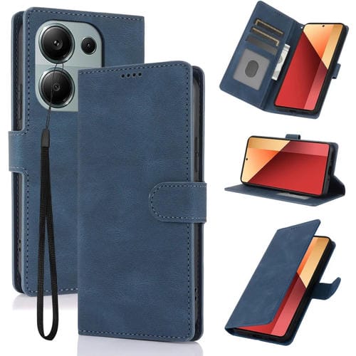 Funda de Piel de Becerro con Textura de Piel de Becerro y Diseño de Fantasía Global para Redmi Note 13 4G (Azul)