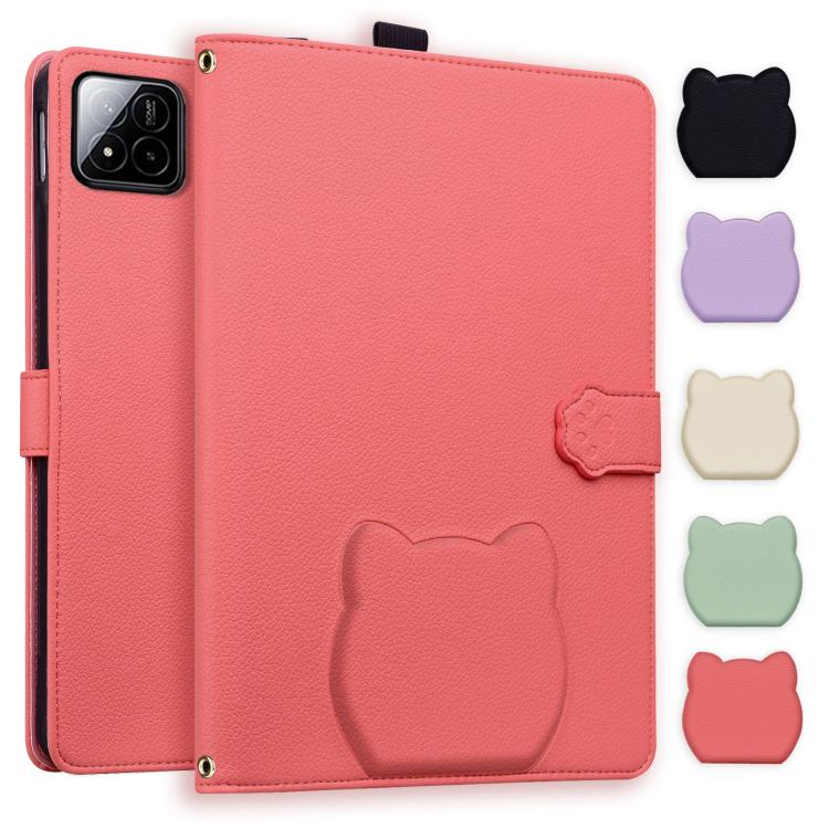 Funda de piel de lichi con tacto de gato para Xiaomi Pad 7 (rojo sandía)